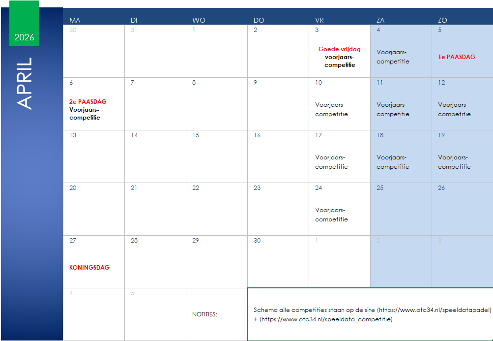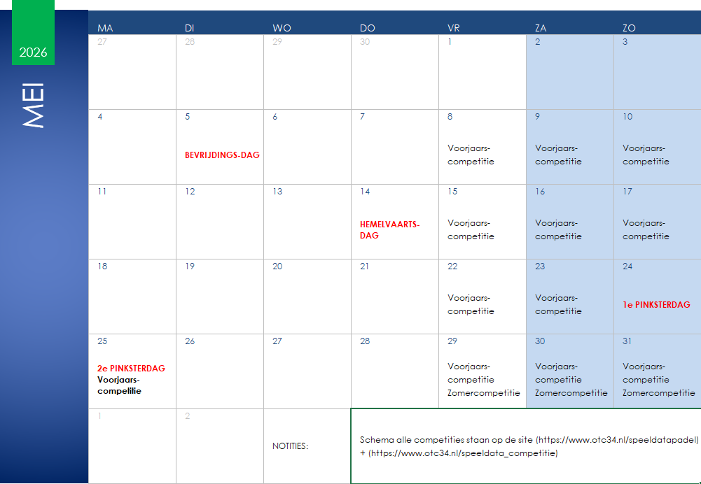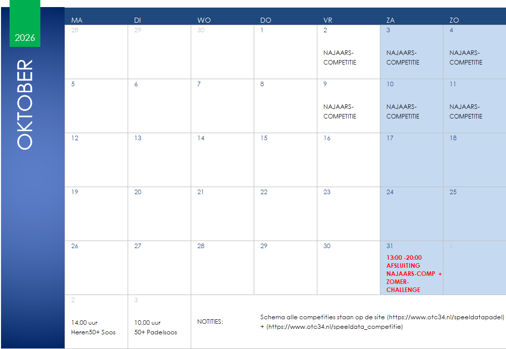 Speeldata competitie