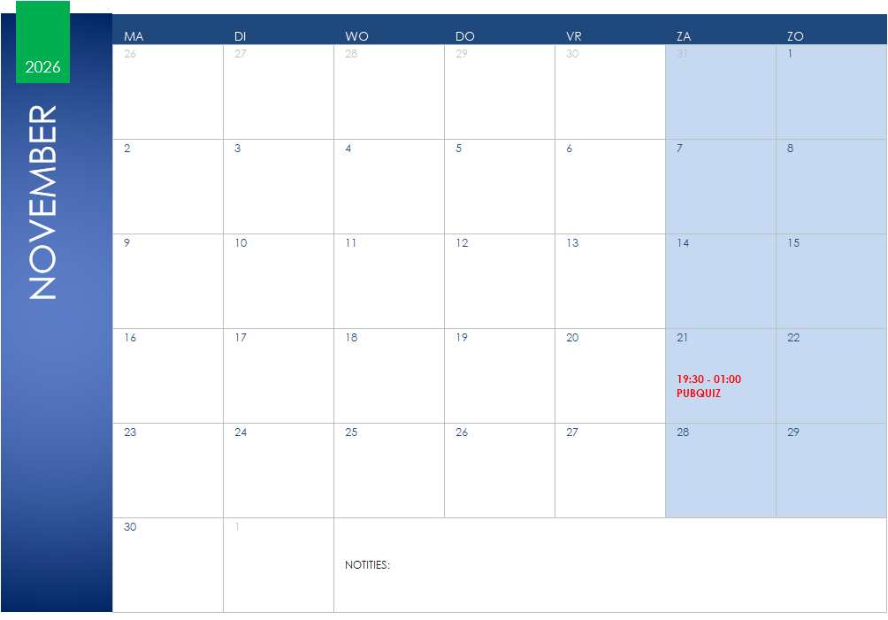 Jaarkalender 2026