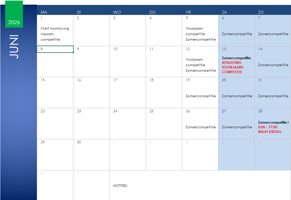 Speeldata competitie jeugd
